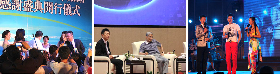 明星艺人:吴启华、蒋大为、费翔、玖月奇迹、温碧霞、凤凰传奇、汤镇宗、汤镇业、刘锡明、洪欣、焦恩俊、齐秦、周华健、温兆伦、胡杏儿、郑希怡、吕颂贤、罗中旭、任达华、游鸿明、苏永康、金海心、安又琪、何家劲、张文慈、李冰冰、周海媚、邰正宵、吴大维、关礼杰、熊黛林、魏俊杰、陶大宇、李丽珍、陈明真、陈星等。